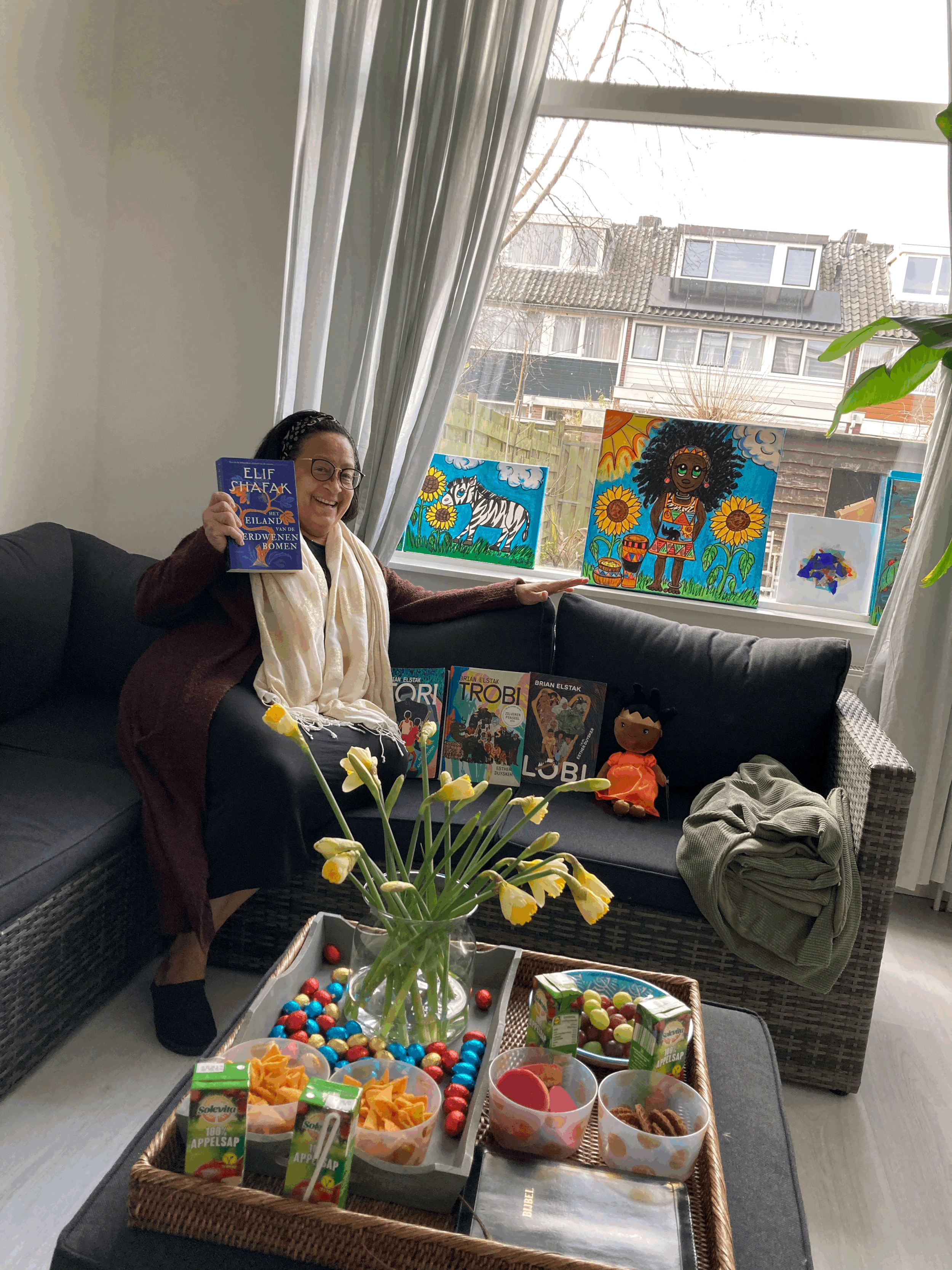 Hier in de rechter voorzaal achter de bank kan ze heerlijk ongestoord lezen, niemand weet haar geheime leesplek, soms als het een beetje koud is gaat zij achter het gordijn. Claire speelt niet graag met kinderen het liefste wat zij doet is lezen en nog eens lezen.
